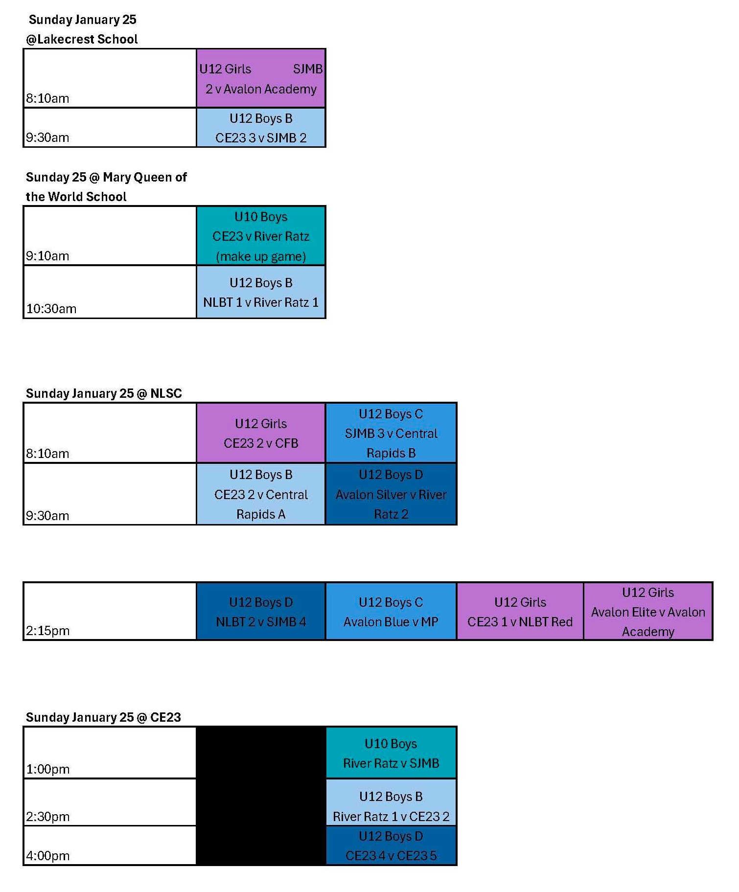 These schedules may not be the updated ones, please follow up with your clubs if you have any questions or discrepancies.